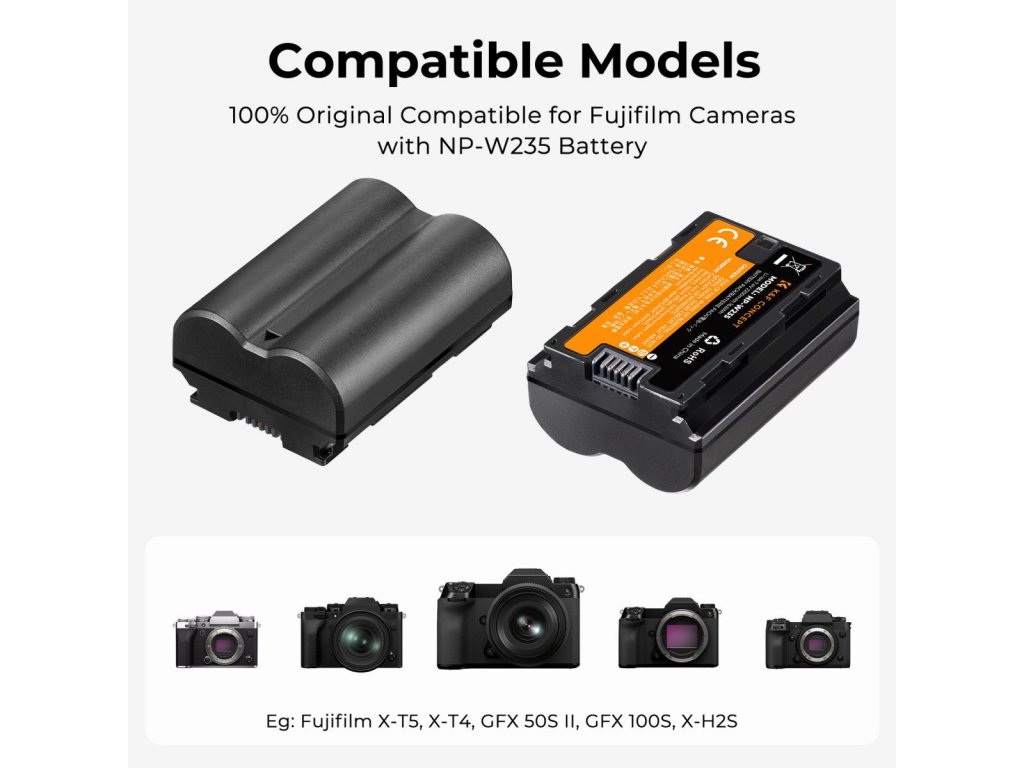 Perfect pentru camera Fujifilm: Bateria K&F CONCEPT NP-W235 se potrivește perfect pentru camera și încărcătorul original Fujifilm. Sunt potrivite pe scară largă pentru Fujifilm X-T5, X-T4, GFX 50S II, GFX 100S, X-H2S etc.