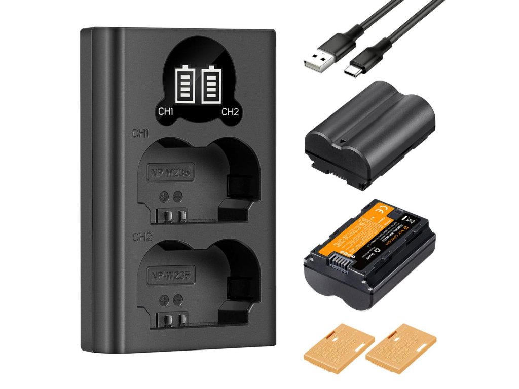 Baterii de schimb pentru bateriile standard originale Fujifilm NP-W235, cu două baterii reîncărcabile de 2200 mAh și un încărcător USB cu două sloturi, astfel încât să puteți înregistra momente frumoase în orice moment, fără să vă faceți griji că rămâneți fără energie.