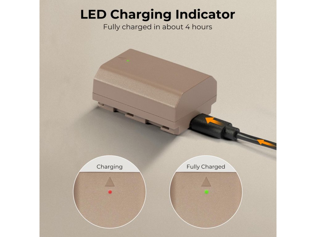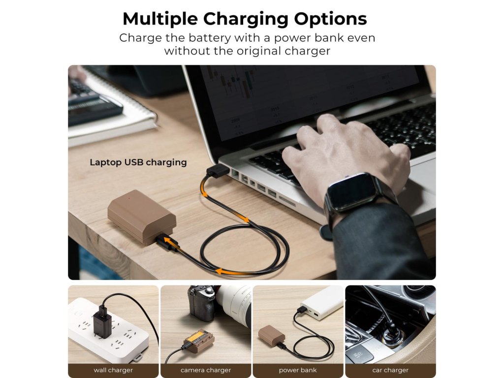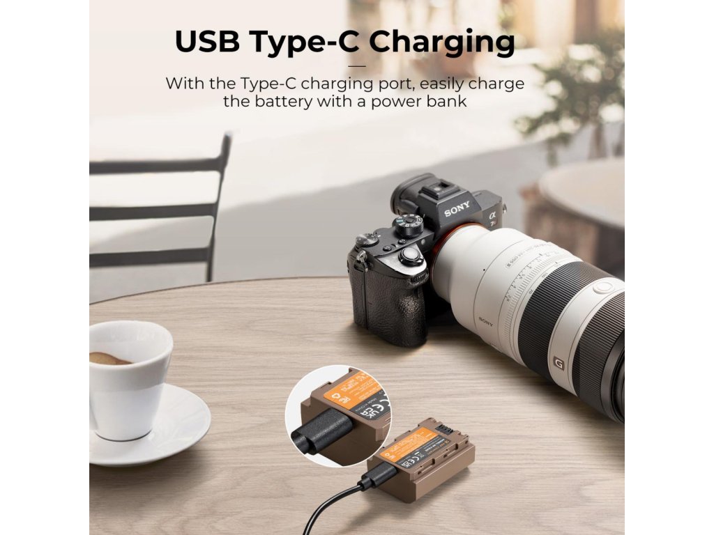 * ?Mai multe opțiuni de încărcare? Poate fi încărcat direct cu un cablu de încărcare de tip C și este, de asemenea, compatibil cu încărcarea cu un încărcător dedicat pentru NP-FZ100; încărcarea cu un încărcător de perete USB, un încărcător auto sau o sursă de alimentare mobilă externă oferă mai multe opțiuni de încărcare a bateriei.