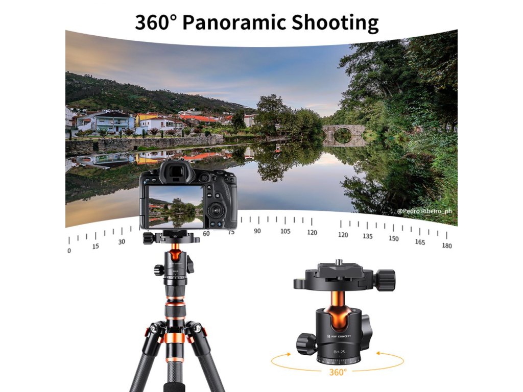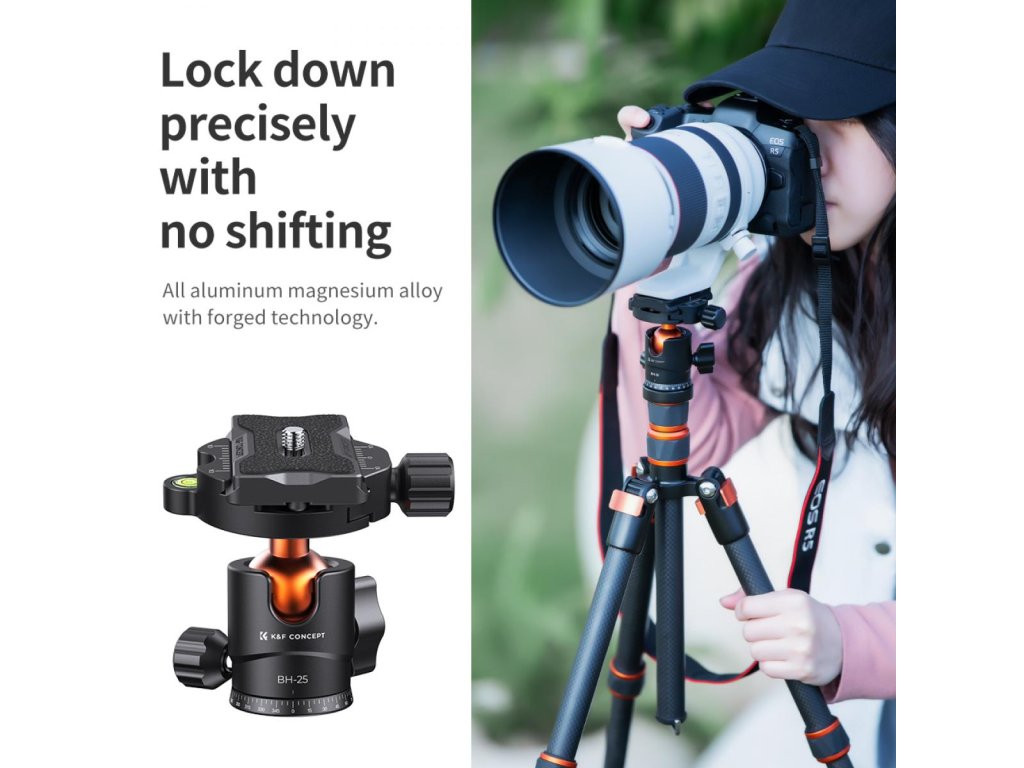 K&F Concept Cap bilă trepied pentru cameră cu placă de eliberare rapidă de 1/4 inch și...