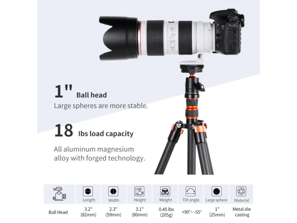 - * ? Puternic și durabil? fabricat din aliaj de aluminiu de înaltă calitate, cu diametrul bilei de 25 mm. sarcina maximă este de 8 kg / 17,63 lbs, așa că nu trebuie să vă faceți griji cu privire la deteriorarea camerei.