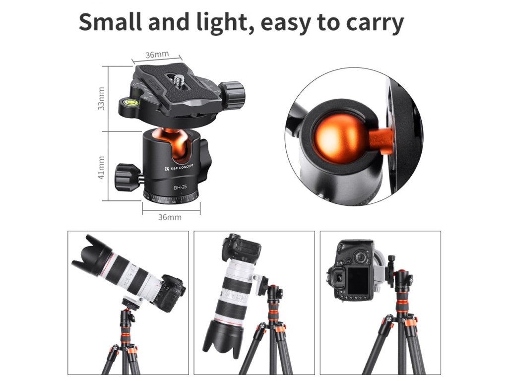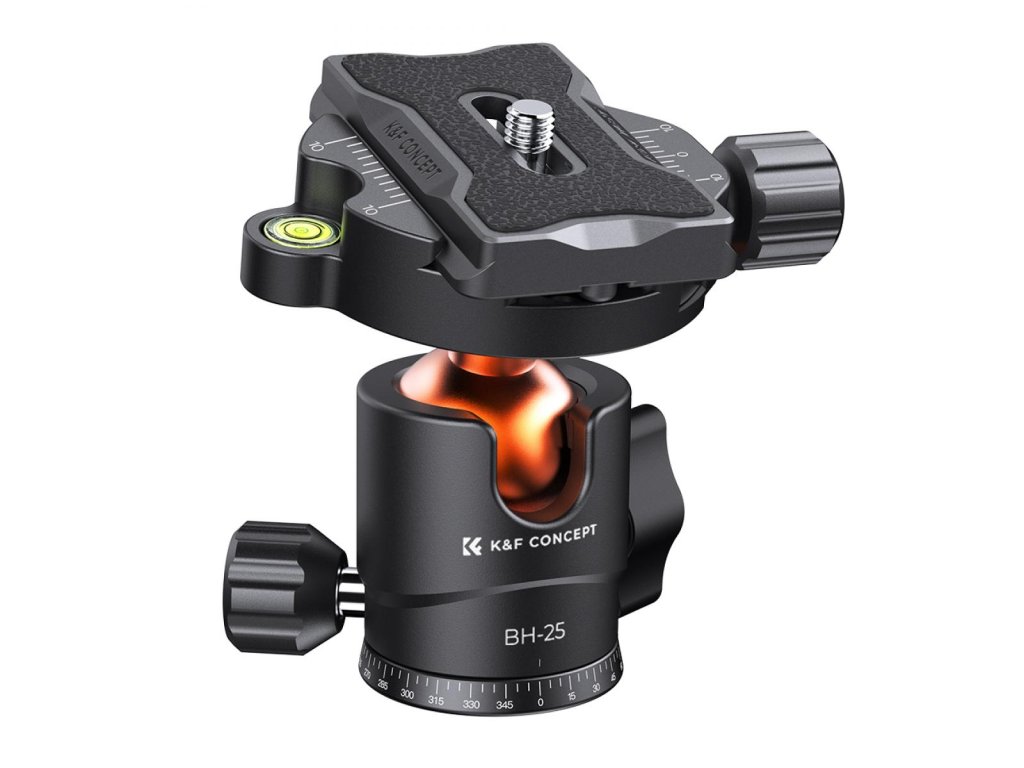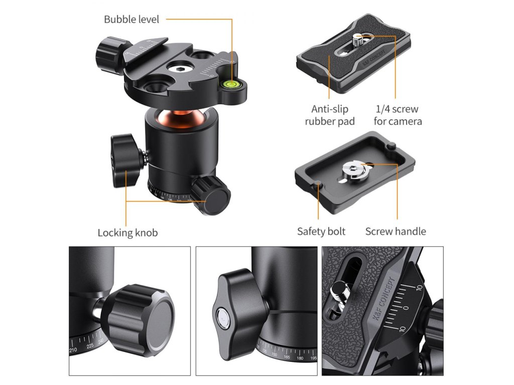 K&F Concept Cap bilă pentru trepied pentru cameră cu placă de eliberare rapidă de 1/4 inch și nivel cu bulă, capacitate 8 kg, pentru trepied, monopied, glisor pentru cameră, SLR