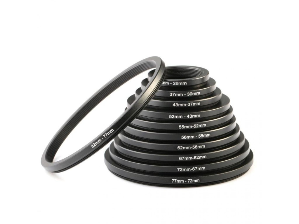 - * Setul include: inel metalic general 11 buc 30-26MM,37-30MM,43-37MM,52-43MM,55-52MM,58-55MM,62-58MM,67-62MM,72-67MM,77-72MM,82- 77 mm