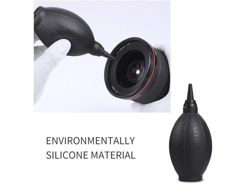 Ventilator de aer + mănuși antistatice: ventilatorul de aer direcționează fluxul de aer pentru a elimina murdăria și praful de pe lentile sau senzorul camerei. Mănușile antistatice întăresc aderența, partea deget a mănușii este acoperită cu PU, previne electricitatea statică, mărește frecarea și evită amprentele digitale