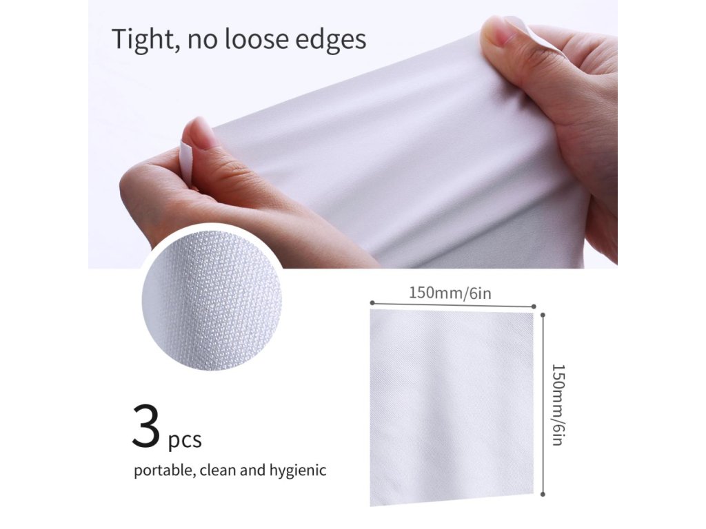 - * 4. Laveta de curatare 150x150mm, textura fina, moale si fara scame, lavabila si reutilizabila;