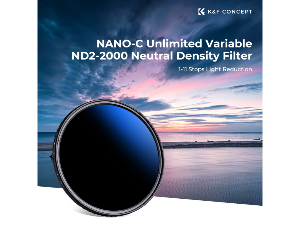 K&F Concept K&F 55MM seria C variabil/fader ultrasubțire, acoperit cu albastru ND2-2000