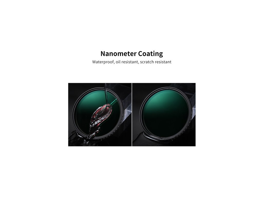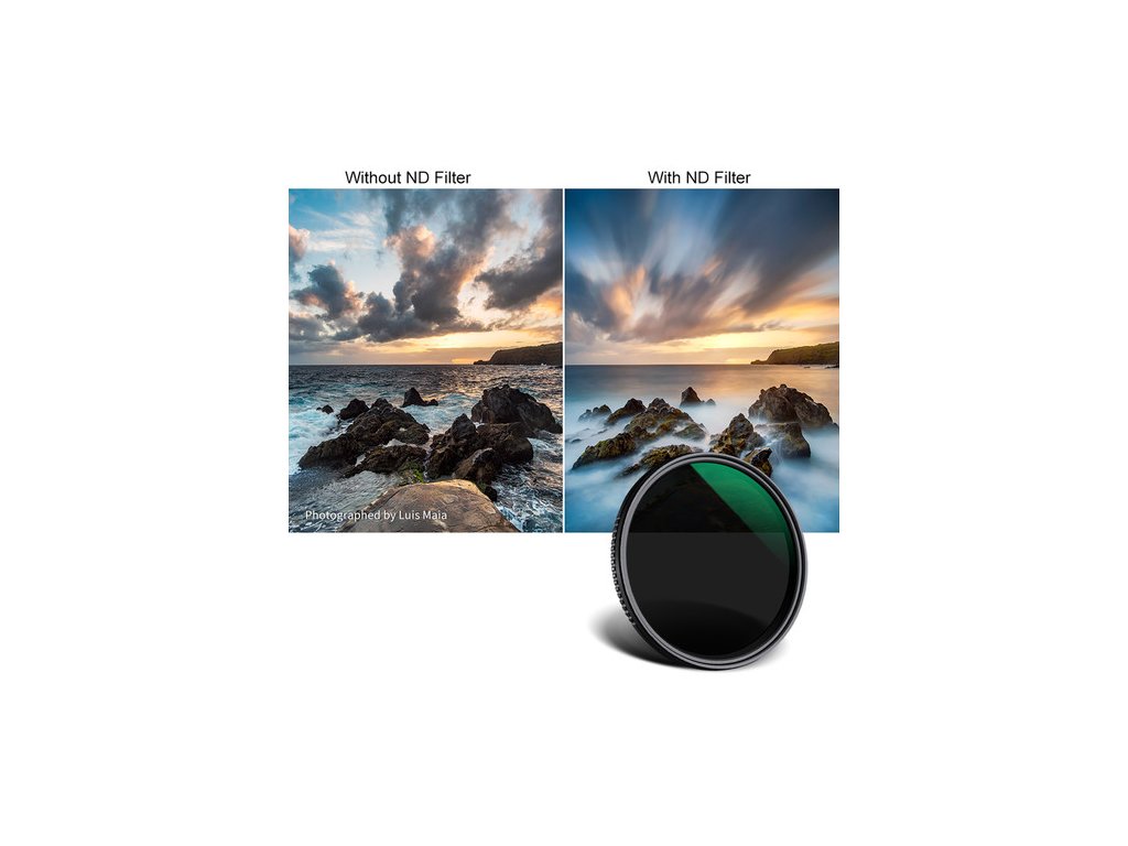 Filtrul ND variabil ND8-ND2000 Nano-X de la KF Concept este un filtru de 58 mm care permite reducerea reglabilă a luminii de la 3 la 11 trepte. Întunecă uniform întregul cadru, permițându-vă să obțineți viteze mai mici ale obturatorului sau o deschidere mai mare decât de obicei. Acest lucru este util în special pentru a crea efecte de estompare a mișcării și pentru a controla adâncimea câmpului, făcându-l ideal pentru fotografia de peisaj și fotografierea în condiții de lumină puternică. Este fabricat din sticlă optică AGC japoneză și menține o calitate ridicată a imaginii. Stratul său impermeabil multirezistent respinge praful, murdăria și este ușor de curățat. Cu o acoperire multistrat cu 24 de straturi și un inel de filtru subțire de 7,5 mm din aliaj de aluminiu pentru aviație, acest filtru oferă performanțe excepționale.
