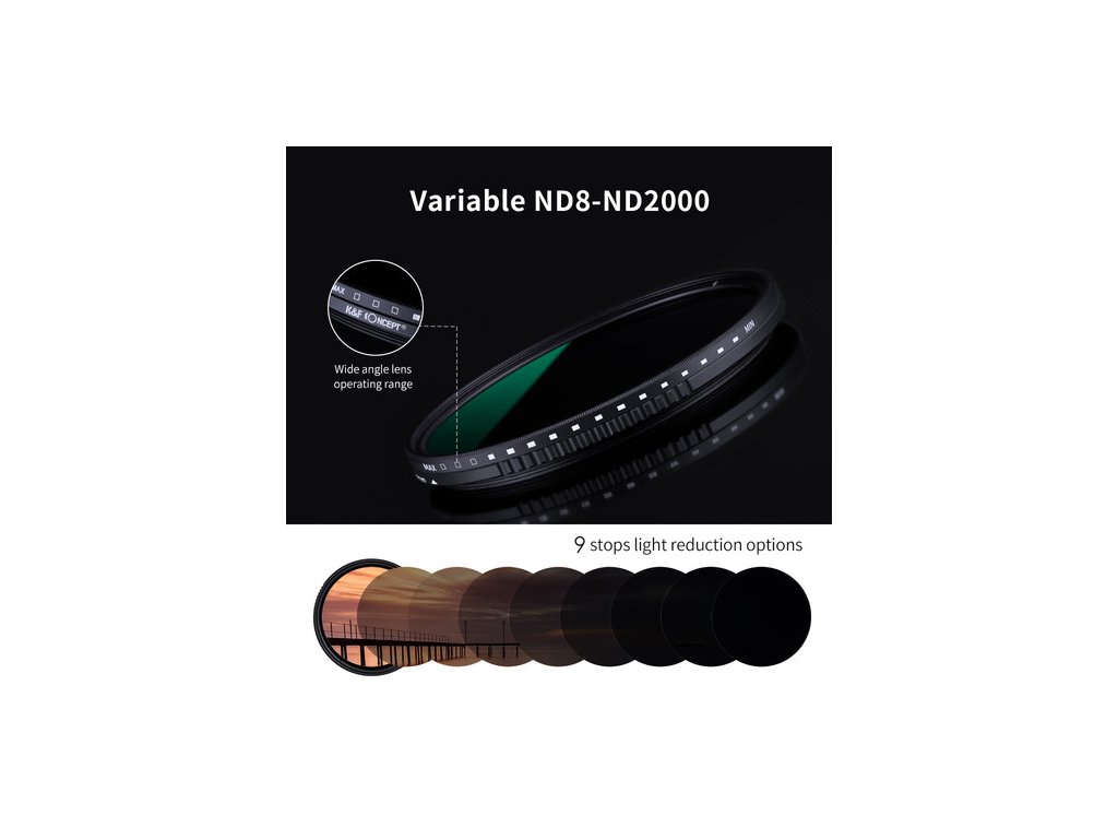 K&F Concept K&F 58MM MV36 Slim Variable/Fader NDX, ND8~ND2000, Impermeabil, rezistent la...