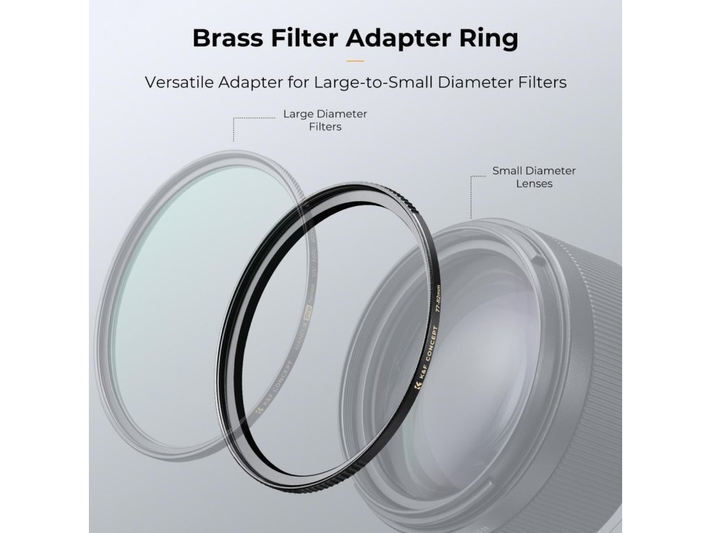 K&F Concept K&F 67-82mm Inel adaptor pentru filtru din alamă, 2,9 mm grosime, cu 3 buc...