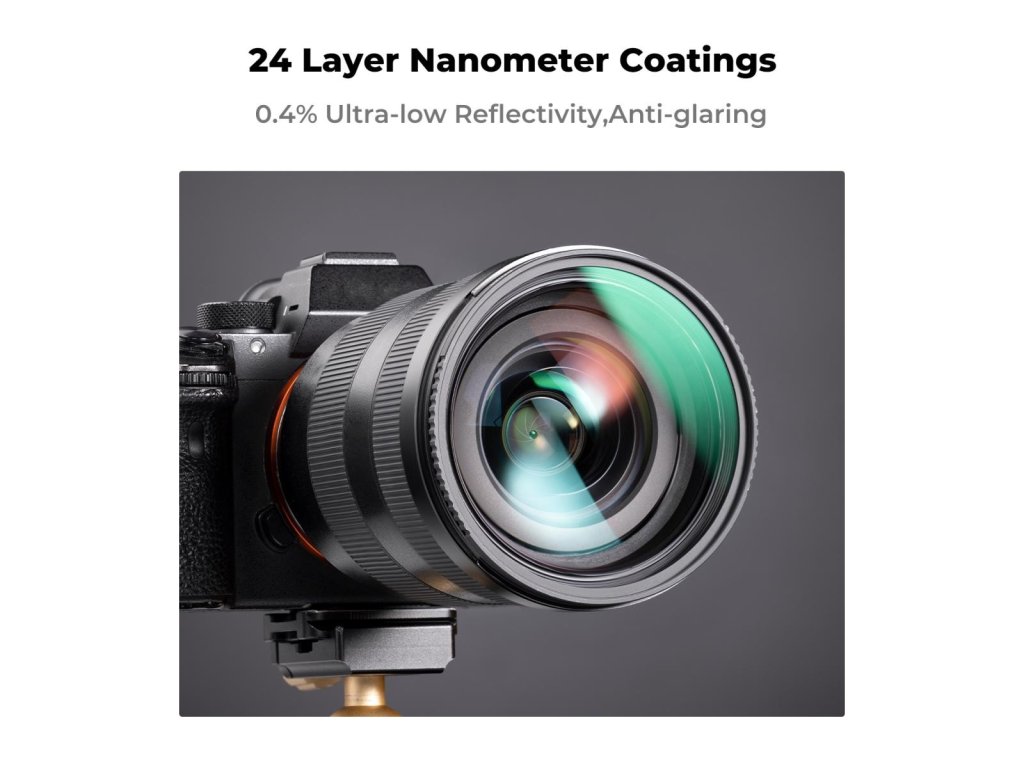 Filtru UV de protecțieare două funcții:reduce nuanța albastră din imaginicauzate de radiațiile UV (transmitanță de 98,6% fără a afecta claritatea sau calitatea imaginii) șiprotejează lentila de praf azgârieturi.