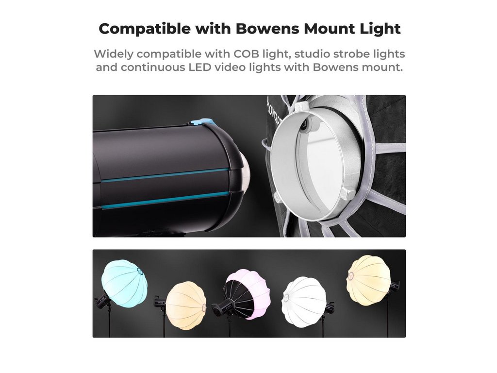 - Compatibilitate cu montura Bowens: Este compatibil cu orice montură de lumină Bowens standard, făcându-l un accesoriu versatil atât pentru fotografie, cât și pentru video.