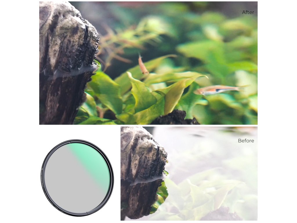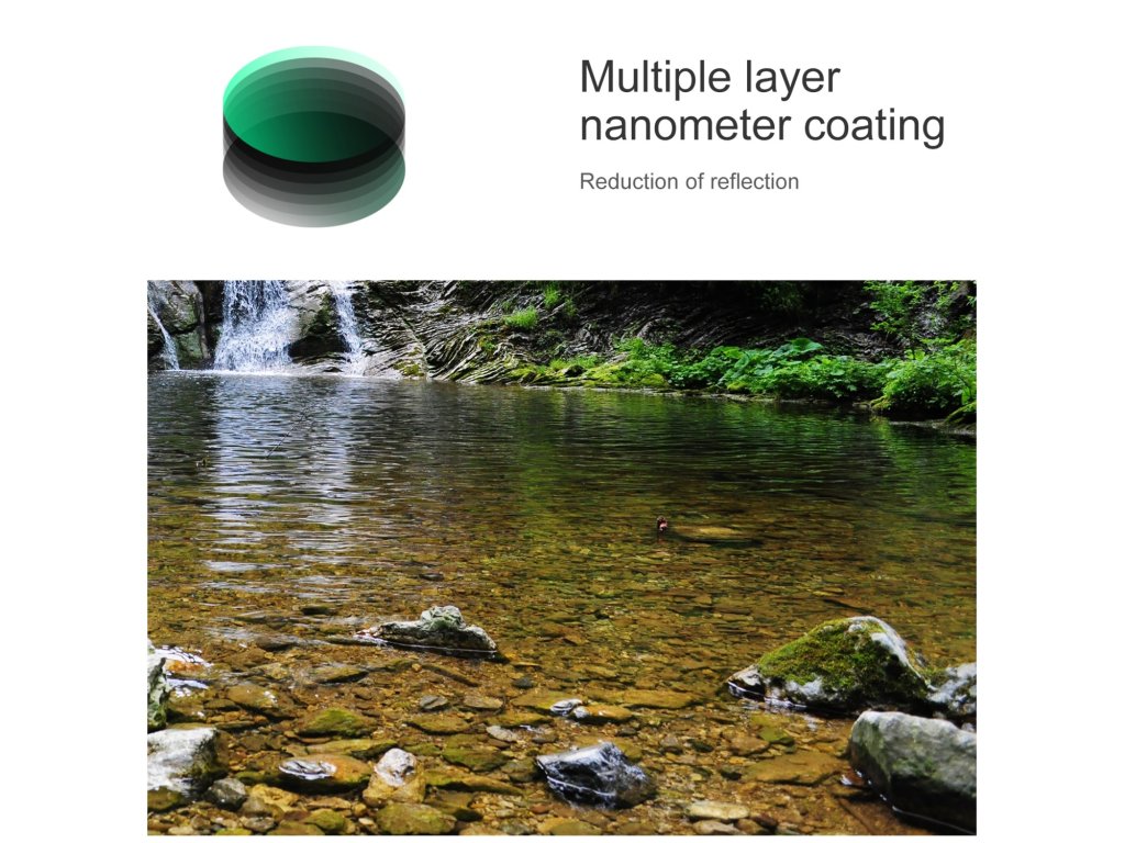 Filtru de polarizare realizat din cea mai bună sticlă optică germană cu aproape zero distorsiuni ale luminii. Se caracterizează printr-o funcție de filtrare superioară, eliminând eficient lumina reflectată dăunătoare.