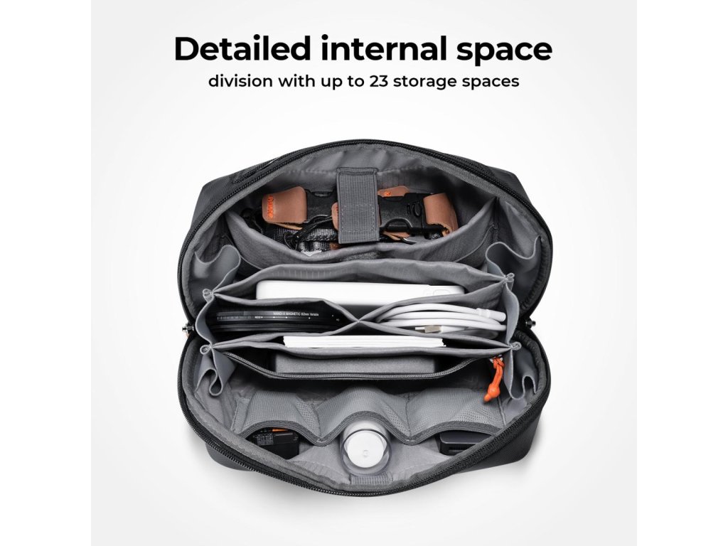 Un concept de design ușor, cu o împărțire detaliată a spațiului interior și până la 23 de spații de depozitare. Este îngrijit și ordonat pentru a stoca telefoane mobile, încărcătoare, cabluri de date, alimentare mobilă, unități flash USB, șoareci, chei de mașină, carduri bancare etc.
