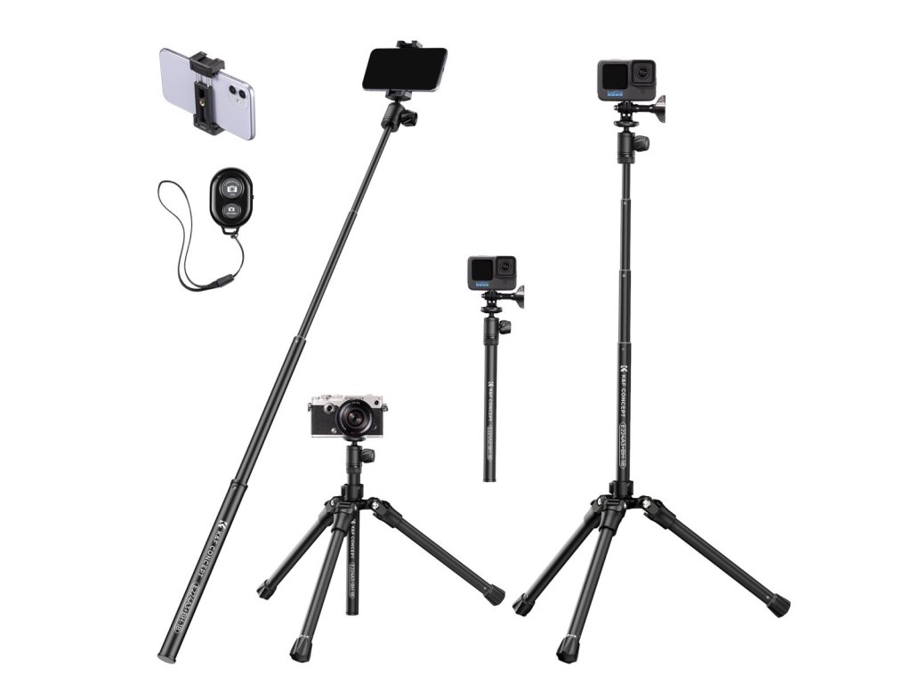 Trepiedul flexibil de la K&F Concept oferă funcționalitate versatilă, tranziția perfectă între trepied, suport de masă și selfie stick pentru a satisface o varietate de nevoi de fotografie, indiferent dacă sunteți în călătorie, vlogging, streaming live și multe altele. Designul său unic cu tub excentric asigură o configurare rapidă și ușoară, permițându-vă să vă concentrați pe fotografiere fără a pierde timpul. Acest trepied este extrem de portabil pentru călătorii, cu un tub reglabil din 4 piese, care variază de la 36 cm/14,1 inchi până la 170 cm/66,9 inchi și o lungime compactă pliată de numai 30 cm/11,8 inchi cu o greutate de numai 0,88 kg/1,94 inchi. lbs. Se mândrește cu o compatibilitate excelentă, având un filet standard de 1/4" potrivit pentru majoritatea plăcilor cu eliberare rapidă Arca-Swiss și un șurub de 1/4" pentru o varietate de dispozitive, inclusiv camere foto, DSLR, proiectoare, telescoape și chiar telefoane mobile pentru selfie-uri, live. transmisii și fotografiere Time-lapse Cu o capacitate de încărcare robustă de 4 kg/8,8 lb și un design neted, amortizat cu ulei, permite o rotație precisă a camerei, în timp ce scara orizontală de 360 de grade de pe bază îmbunătățește fotografiile panoramice și oferă rezultate impresionante care rivalizează cu ultra- lentile largi.