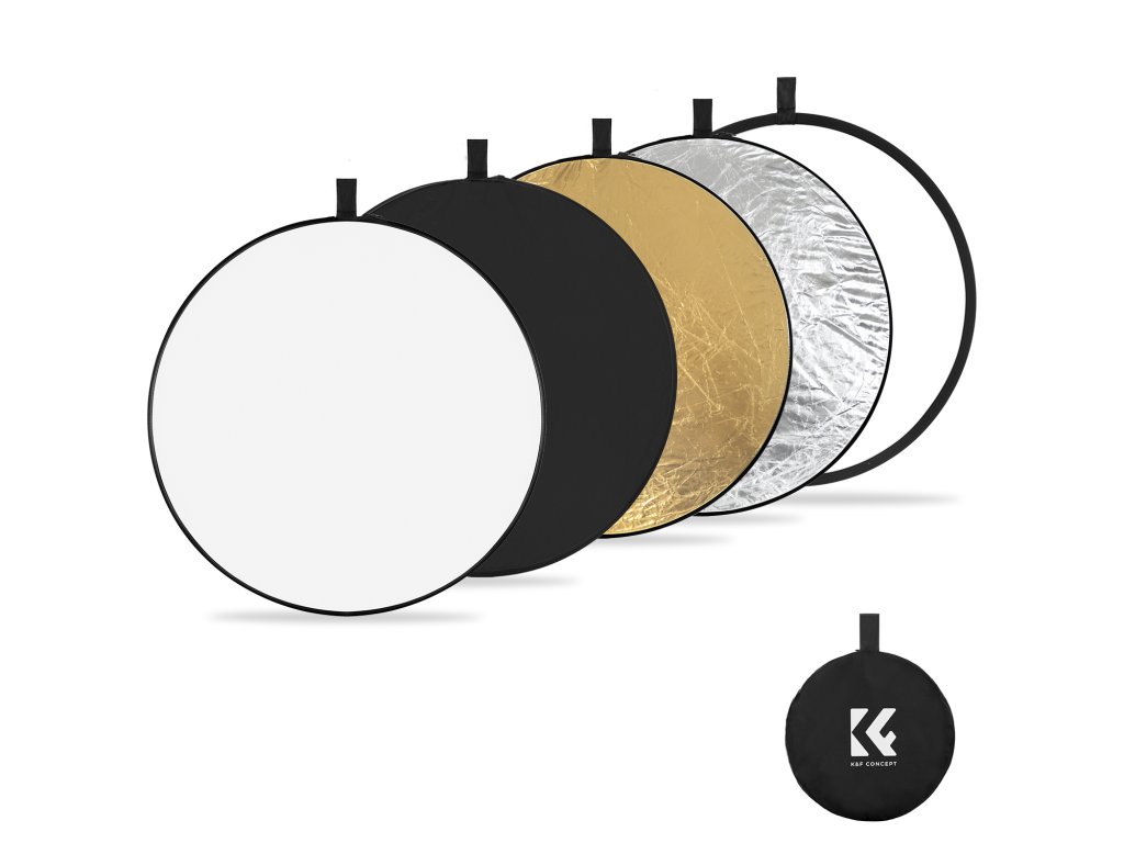 K&F Concept K&F reflector rotund de 56 cm Difuzor de lumină multidisc pliabil 5 în 1 cu geantă