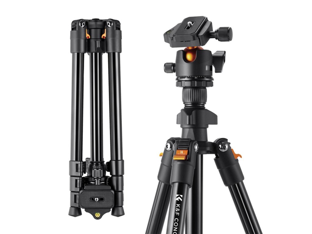 K&F Concept K&F Trepied de călătorie ușor din aluminiu de 1,6 m Trepied compact pentru camere video...