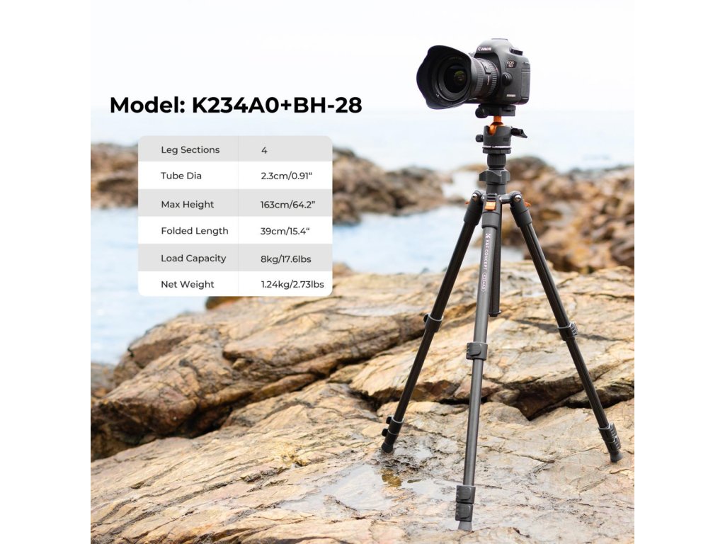 - * ?Coloană centrală cu două fețe pentru fotografie macro? Trepiedul K&F Concept BI234M are o coloană centrală cu două fețe, astfel încât să vă puteți apropia și mai mult de sol atunci când este necesar. Această funcție este special concepută pentru fotografia macro.