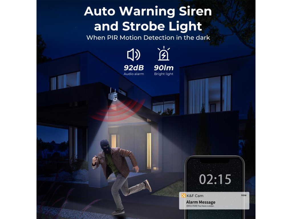 *? Detectarea mișcării PIR și alarmă sonoră și luminoasă? PIR de înaltă sensibilitate îmbunătățit, combinat cu algoritmul AI, identificarea precisă a obiectelor în mișcare, mesaje push rapide, indiferent unde vă aflați, nu veți pierde informații cheie, recunoașterea pe timp de noapte a intruziunii străinilor, produsul poate deschide activ sunet și alarmă luminoasă pentru a conduce îndepărtați intrusul, pentru a vă proteja siguranța proprietății.