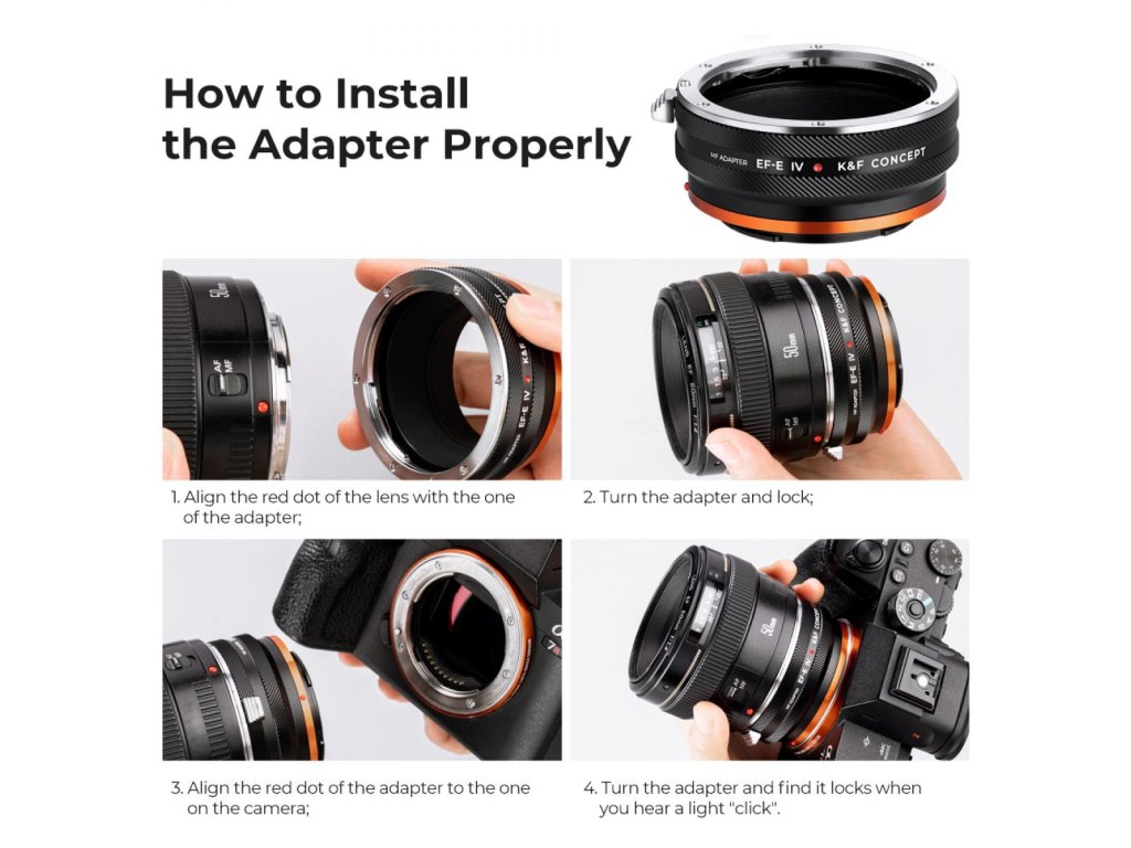 K&F Concept KF, M12106, ADAPTATOR LENTILE DE ÎNALTA PRECIZIUNE, Antireflex, EOS-NEX IV PRO
