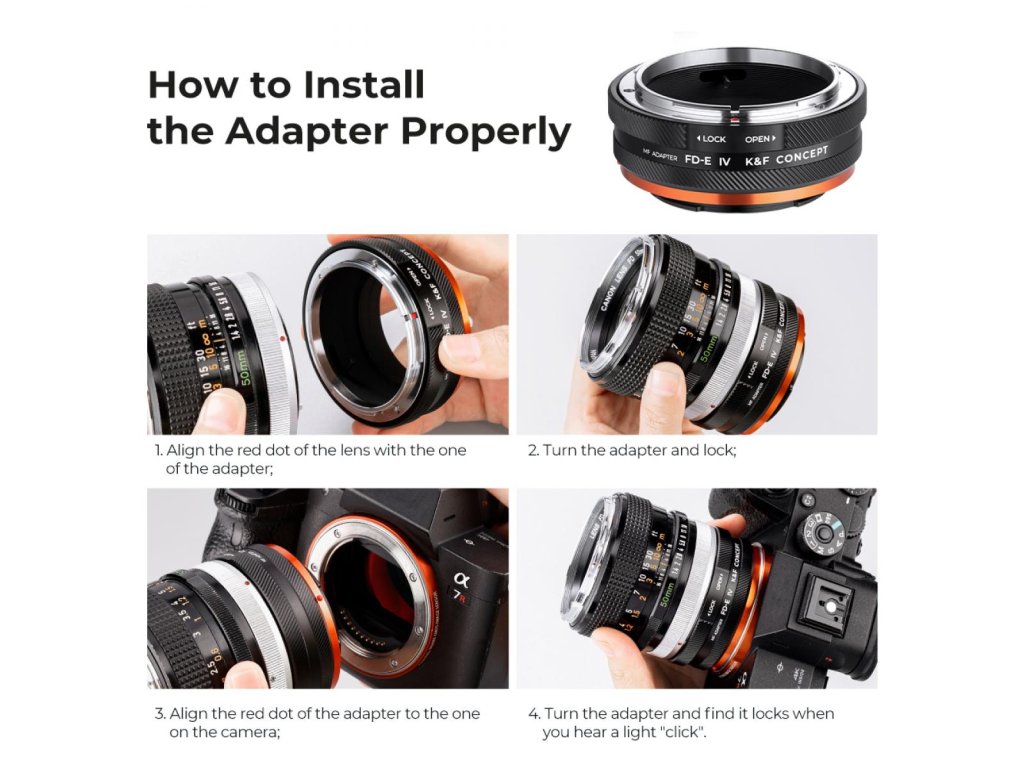 Adaptați fără efort obiectivele dvs. din seria Canon FD/FL la corpurile din seria Sony E cu adaptorul nostru inel proiectat cu precizie. Controlul complet manual asigură o prindere stabilă și sigură, sporind siguranța în utilizare. Un adaptor cu un logo punct roșu pentru o aliniere precisă facilitează instalarea și îndepărtarea. Integrarea strânsă a inelului de cuplare și a baionetei elimină orice risc de slăbire. Un inel durabil realizat din aliaj de aluminiu-magneziu de înaltă precizie asigură o transmisie perfectă și permite funcții macro confortabile și netede ale obiectivului, cu avantajul suplimentar de focalizare la infinit. Crește-ți fotografia cu acest adaptor fiabil și versatil.