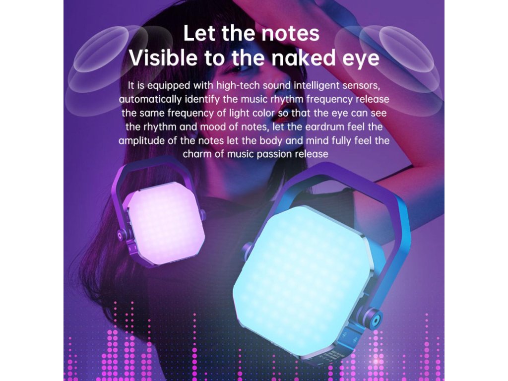 * [Efect de lumină de preluare] Senzor inteligent de sunet încorporat, identifică automat frecvența ritmului muzicii și eliberează culoarea luminii cu aceeași frecvență și poate fi folosit și ca iluminat exterior și iluminat auto;