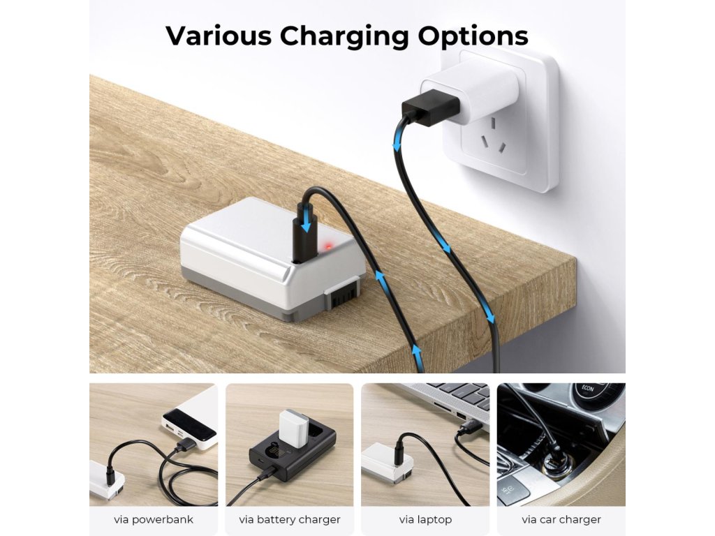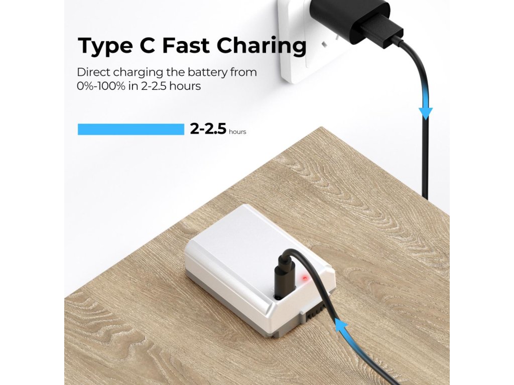 - * 2,5 ore de încărcare rapidă. Această baterie NP-FW50 are un port de încărcare de tip C Nu numai că puteți obține o baterie complet încărcată în 2 ore, dar puteți folosi și cablul de încărcare inclus pentru a încărca direct bateria, fără a fi nevoie de un încărcător suplimentar.