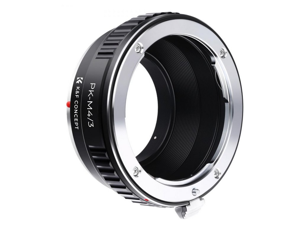 Adaptér fotoaparátu K&F Pentax K na M43 MFT umožňuje použitie objektívov s objímkou Pentax K na fotoaparátoch Micro Four Thirds (MFT), vrátane modelov od Panasonic, Olympus, JVC, DJI, Kodak a Blackmagic. Je vyrobený z mosadze a hliníka a ponúka stabilné a presné manuálne ovládanie s ohniskom na nekonečno.