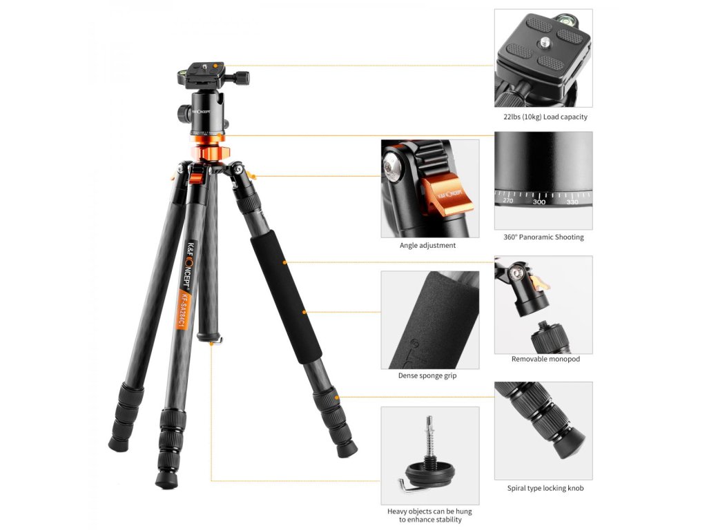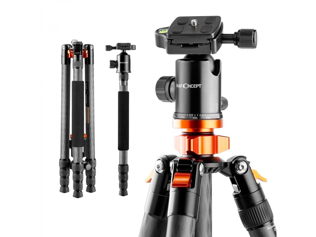 K&F Concept SA284C1 Set trepied/monopied din fibră de carbon cu cap sferic