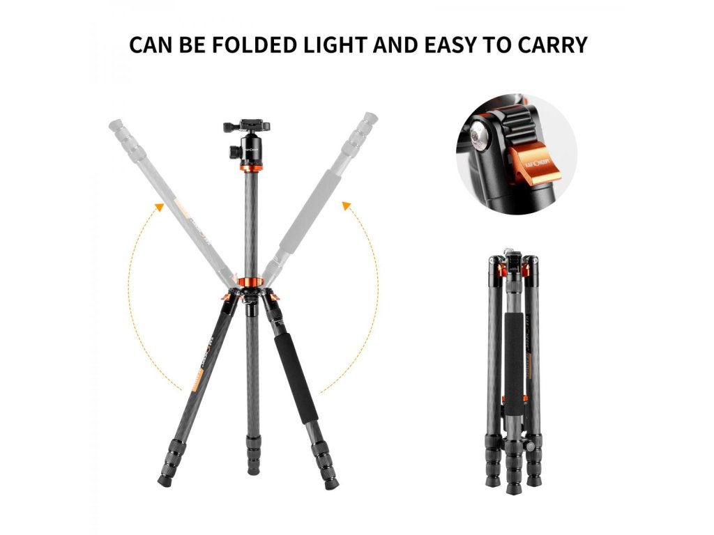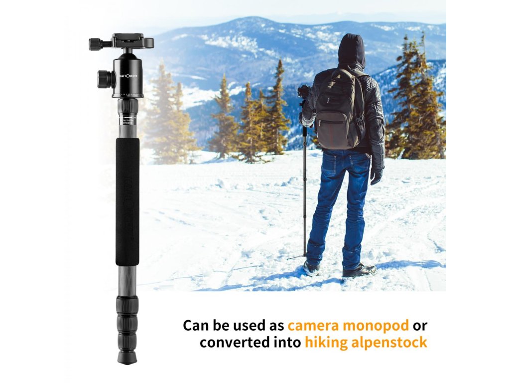 - * ?Monopied detașabil? Acest trepied profesional din fibră de carbon poate fi dezasamblat rapid cu un șurub în axa centrală pentru a-l transforma într-un monopied, oferind o modalitate alternativă de a fotografia cu ușurință.