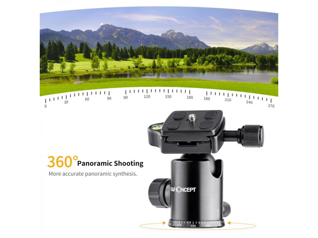 - * Cap bilă panoramic la 360°? Capul sferic trepied din fibră de carbon de 28 mm special proiectat D284C2+BH-28 se poate roti la 360° și obține unghiuri libere, permițându-vă să obțineți fotografia perfectă și o panoramă uimitoare de fiecare dată.