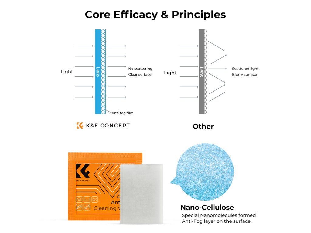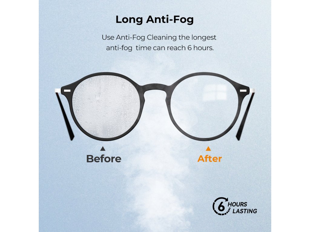 Șervețelele anti-aburire conțin agenți anti-aburire, eliminând jena cauzată de aburirea lentilelor și oferind un mediu fără ceață de 6 ore; (Dacă trebuie să vă asigurați de acest timp, trebuie să vă asigurați că stratul anti-aburire nu este deteriorat)