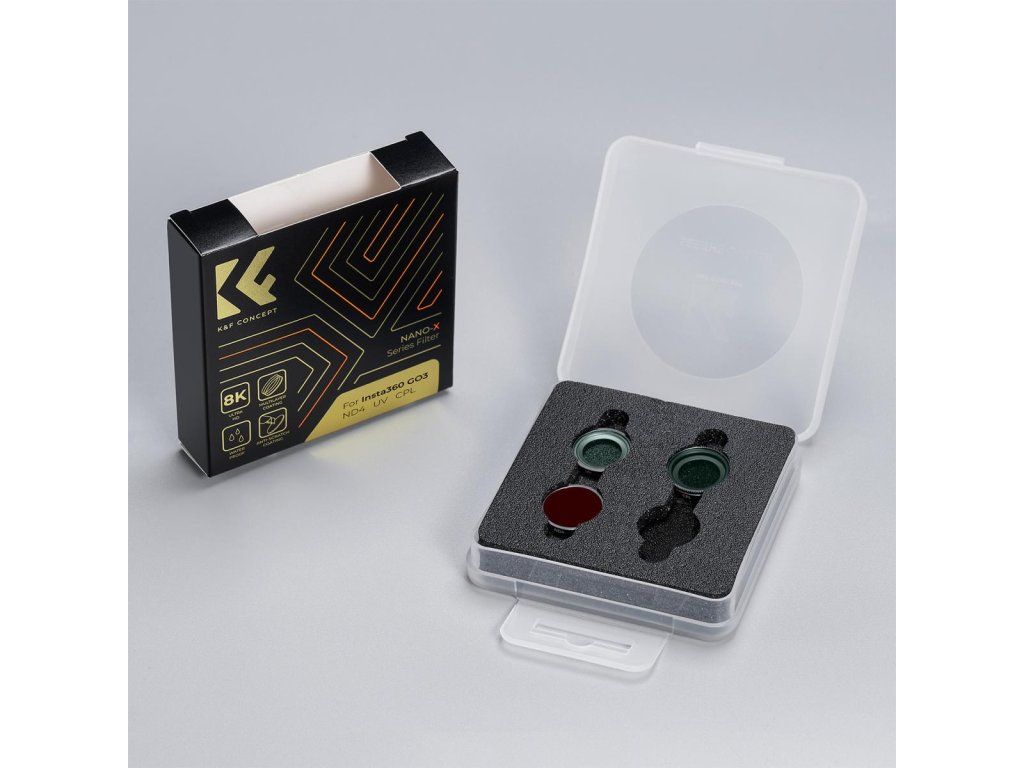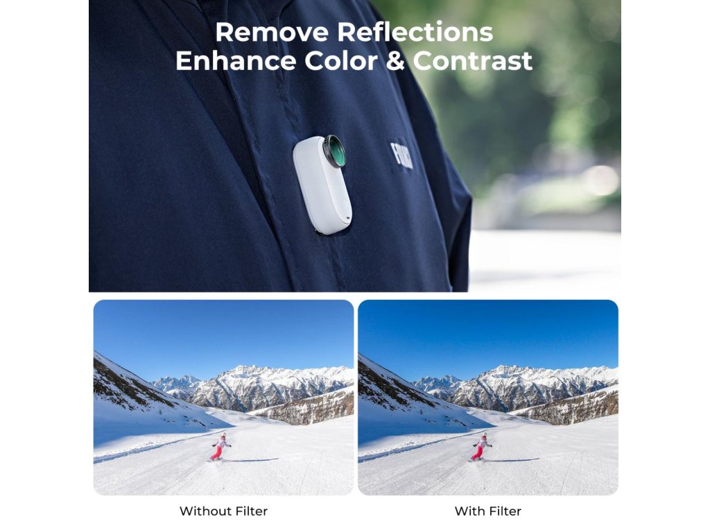 Îmbunătățește-ți fotografia pe Insta360 GO 3 cu un set de filtre care includ filtre UV, CPL și ND4 pentru opțiuni versatile de fotografiere. Fabricate cu sticlă HD AGC și 28 de acoperiri multistrat, aceste filtre îmbunătățesc calitatea imaginii, reduc eclipsele și vă protejează obiectivul, în timp ce instalarea ușoară asigură o utilizare fără probleme.