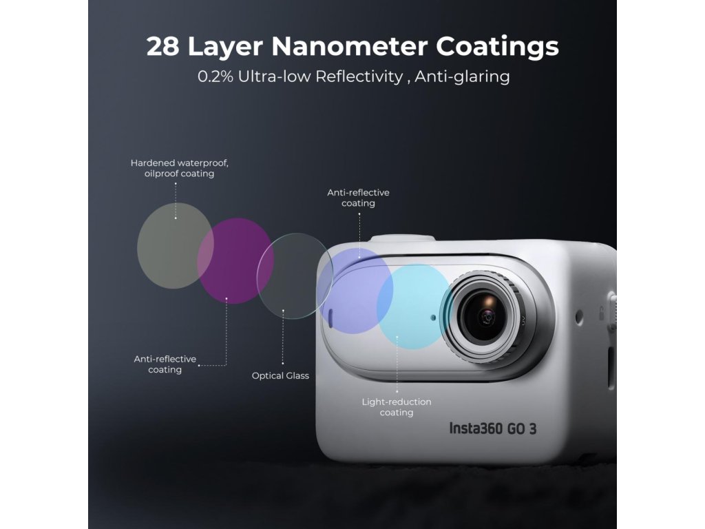 - * 【28 de acoperiri multistrat】 Ambele părți ale sticlei cu acoperiri nanometrice, reduc strălucirea și fulgerul cât mai mult posibil, rezistente la apă, la zgârieturi, la praf și la ulei, protejează-ți obiectivul insta360 go 3 din toate părțile.