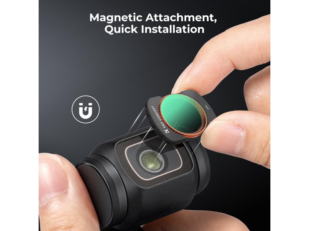 - * 【Instalare magnetică】 Cu sistemul magnetic, filtrul poate fi instalat pe obiectivul Osmo Pocket 3 foarte rapid și ușor, nu veți rata momentul uimitor!