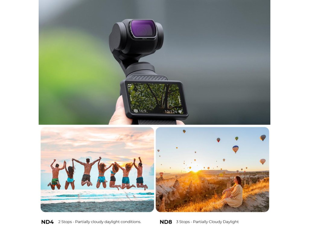 Pachet de 3 filtre ND CPL K&F Concept pentru DJI Osmo Pocket 3 - Include filtre pentru obiective CPL, ND4, ND8 - Îmbunătățiți-vă fotografiile și videoclipurile. Filtru ND cu diferite niveluri de reducere a luminii: ND4 (2-stop), ND8 (3-stop) - Ideal pentru diferite condiții de iluminare: ND4 și ND8 pentru zilele parțial înnorate - Îmbunătățește controlul asupra expunerii și al vitezei de expunere pentru o captură optimă a imaginii.