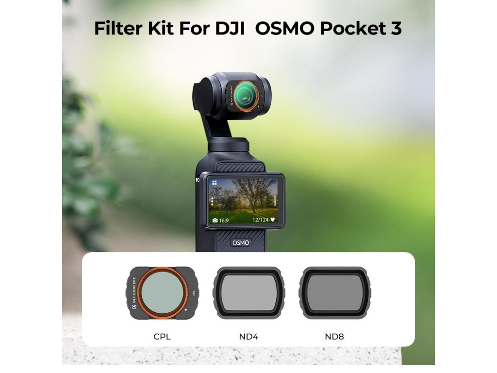 K&F Concept Set de filtre magnetice K&F DJI Osmo Pocket 3 3 buc (CPL+ND4+ND8)