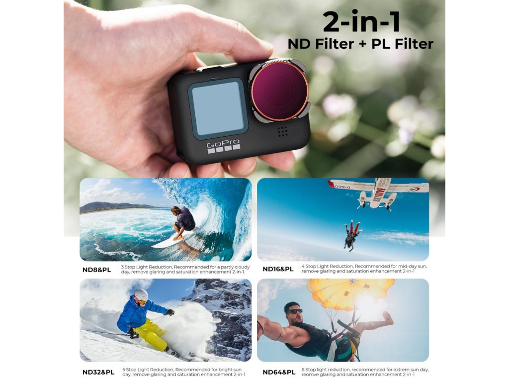 K&F Concept Set de filtre pentru camera de actiune HD (ND8/PL+ND16/PL+ND32/PL+ND64/PL) cu...