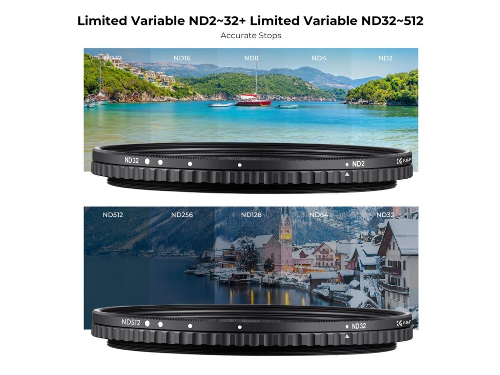K&F Concept Set de filtru ND variabil de 72 mm 2 buc ND2-32 & ND32-512