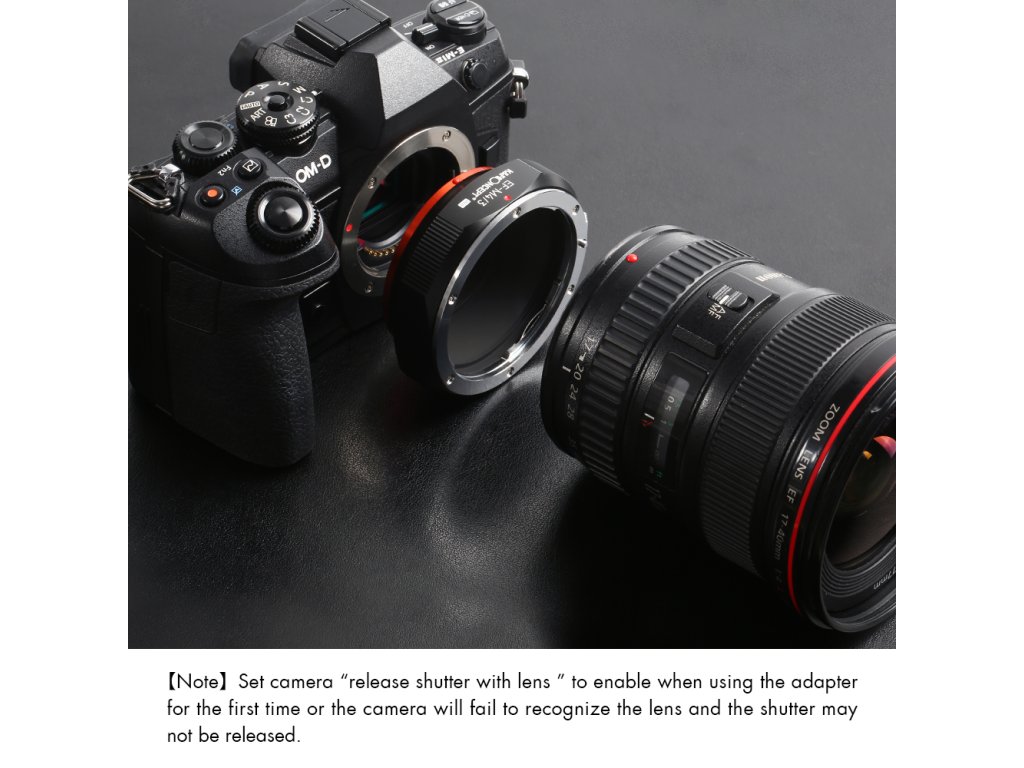 - * Când utilizați inelul adaptor pentru prima dată, spuneți că opțiunea „Fără declanșare a obiectivului” este activată în meniul corpului, altfel obiectivul nu va fi recunoscut și obturatorul nu va fi folosit pentru a face fotografii.