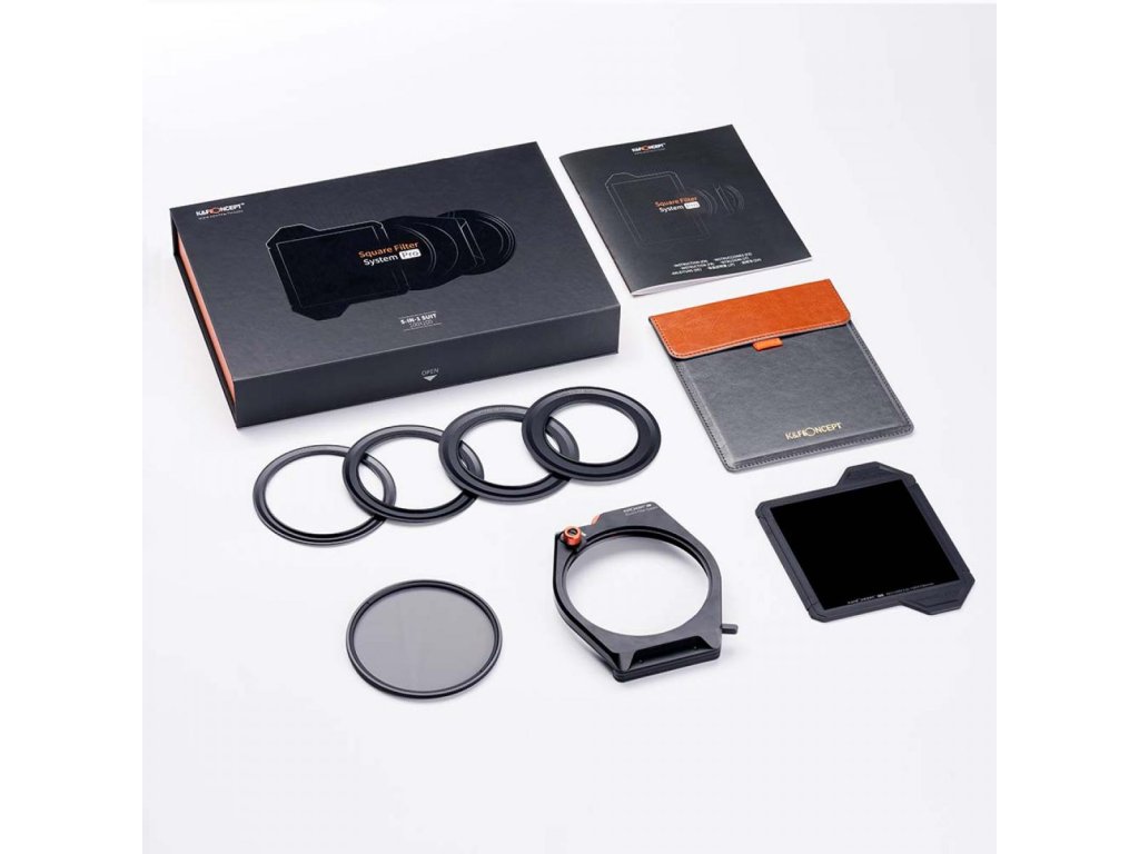 Suport pentru filtru pătrat K&F Concept System Pro (filtru CPL de 95 mm + filtru pătrat ND1000 + ND8 + ND64 + 4 inele adaptoare pentru filtru) pentru obiectivul camerei