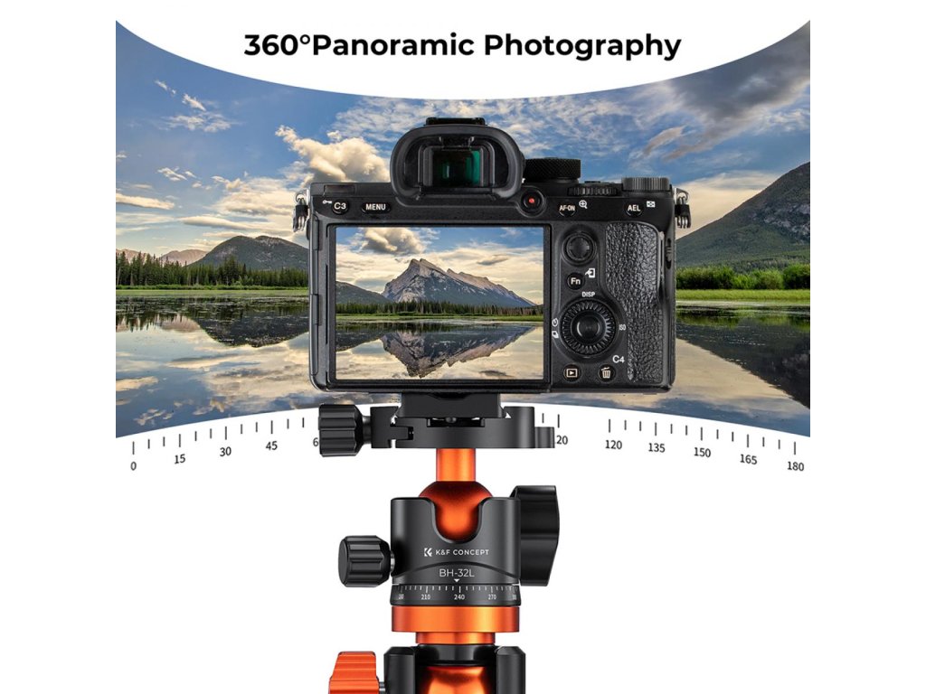 K&F Concept Trepied metalic de 32 mm cap sferic rotativ la 360 de grade panoramic cu...