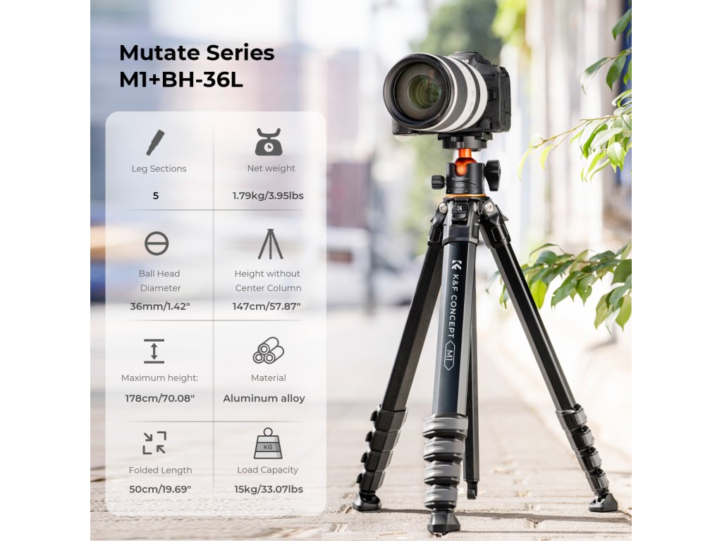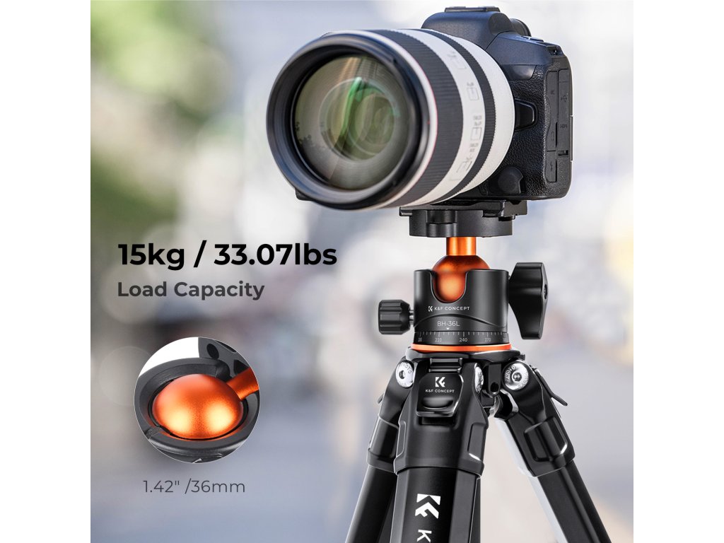 K&F Concept Din aliaj de aluminiu Trepied de călătorie compact pentru trepied pentru cameră 15 kg/33,07 lbs Sarcină 70"/177 cm Înălțime maximă Portabil și flexibil pentru călătorii și lucru M1+BH-35L.