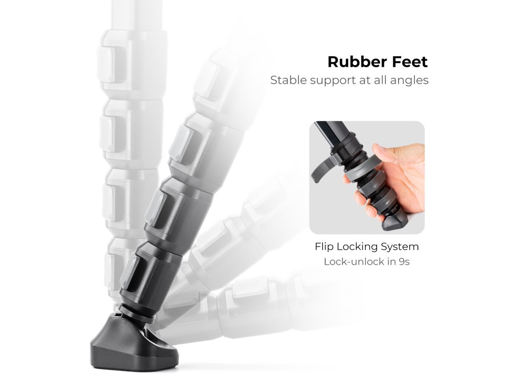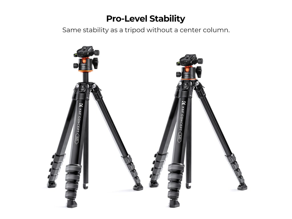 - * Stabilitate la nivel profesional? Pentru a asigura aceeași stabilitate a trepiedului ca un trepied fără coloană centrală, trepiedul este proiectat cu o bază de blocare încorporată, astfel încât picioarele trepiedului pot fi blocate ferm pentru a oferi o stabilitate uimitoare la nivel profesional.