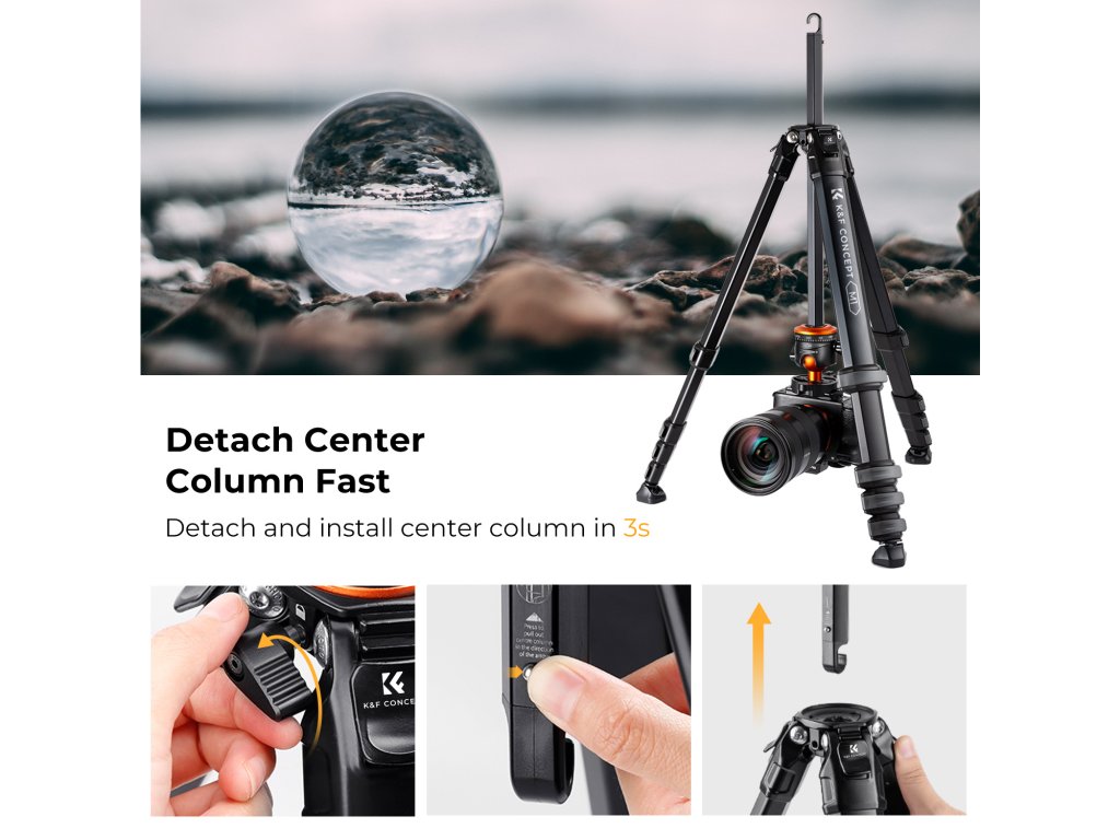 - * ?Fotografie macro? Coloana centrală a trepiedului de călătorie Mutate Series M1 poate fi detașată sau pliată în 3 pași în 3 secunde, economisind timp atunci când fotografiați macro sau detalii la sol.