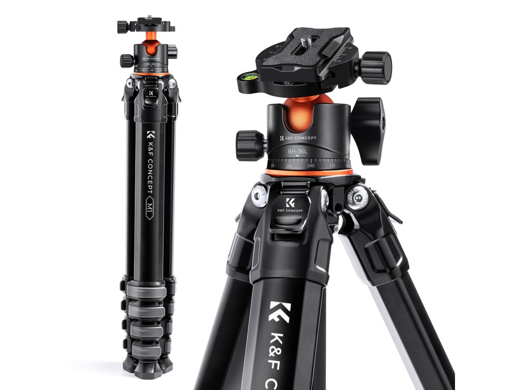 K&F Concept Trepied pentru cameră de călătorie din aliaj de aluminiu compact...