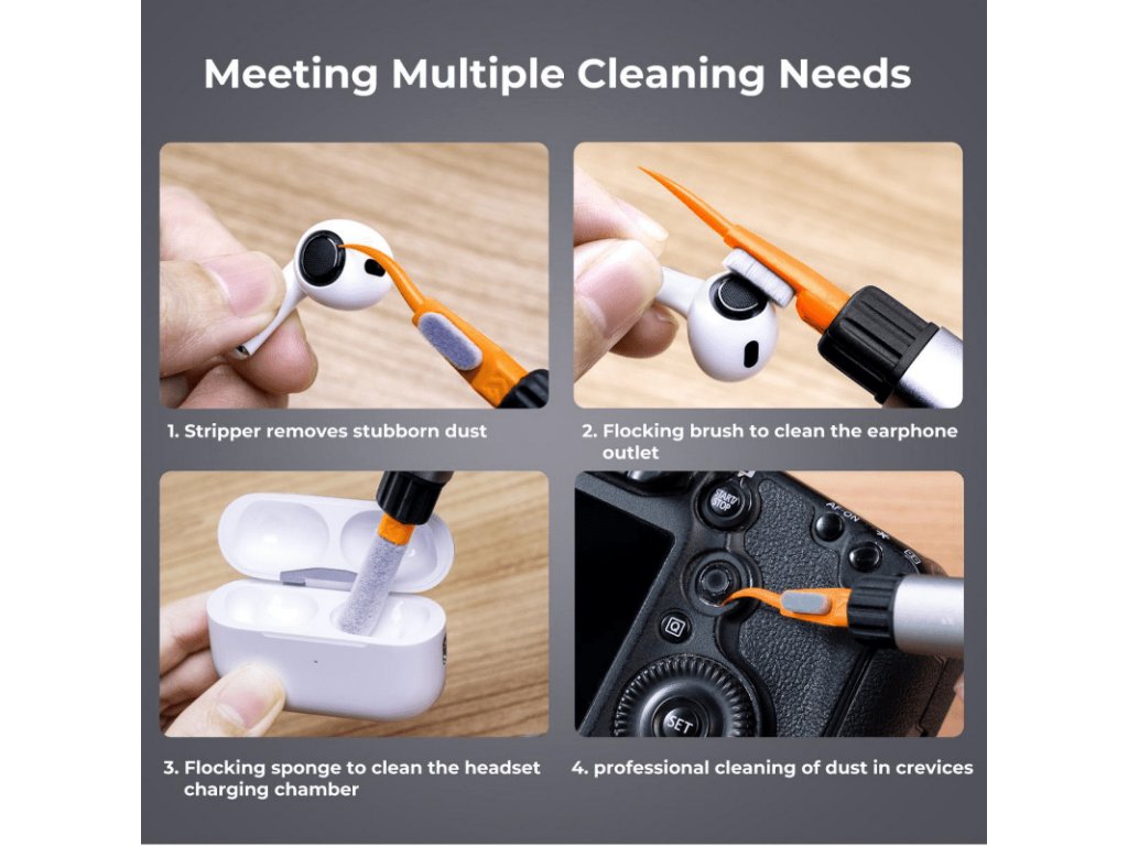 K&F Concept Versatile Switch Cleaning Pen Kit este un set de instrumente utile care sunt ideale pentru curățarea senzorilor full-frame, lentilelor, filtrelor, smartphone-urilor sau căștilor fără fir. La inima sa se afla un maner special cu o perie extensibila care permite instalarea diverselor varfuri. Aparatul, din aluminiu, seamănă cu un stilou în formă. Peria ușurează îndepărtarea prafului și a polenului din locurile greu accesibile. Setul include si 6 spatule matrix cu latimea de 24 mm, 3 bureti flocati, 3 varfuri cu carlig si perie si un varf din velur pentru curatarea celor mai delicate parti ale aparatelor. Cu aceste accesorii, echipamentele dumneavoastră electronice vor străluci mereu curate și, astfel, vă vor servi mai mult timp. Produsul principal Prezintă un set de 3 instrumente utile pentru curățarea ecranelor sau a dispozitivelor optice potrivite pentru curățarea lentilelor, matricelor, filtrelor, smartphone-urilor, căștilor fără fir etc. „must have” în indispensabilul oricărui creator foto-video având grijă de echipamentul său suport special cu o perie detașabilă, permițând instalarea diverselor vârfuri incluse în setul mâner din aluminiu prin forma sa seamănă cu o perie detașabilă a stiloului pentru ușurință îndepărtarea prafului și a polenului din locurile greu accesibile 6 spatule de curățare a matricei cu lățime de 24 mm, ideale pentru senzori full-frame statui din material moale și flexibil 3 bureți flocați proiectați pentru curățarea zonelor greu accesibile 3 sfaturi echipat cu un cârlig și o perie pentru a îndepărta eficient murdăria din găurile și adânciturile mici. Un vârf din velur conceput pentru curățarea părților delicate (de exemplu, filtre sau lentile pentru lentile) Kit practic de curățare 5 în 1 Setul de stilou de curățare pentru comutator versatil K&F Concept nu este doar un instrument de curățare a matricei. Este un „must have” în trusa indispensabilă a oricărui cineast care vrea să aibă mai multă grijă de camera, camera video sau alte componente electronice. In kit vei gasi un suport special cu o perie extensibila. La unul dintre capete poti atasa o spatula pentru curatarea matricei, un burete alungit, un carlig cu o perie mica sau un varf finisat cu velur. Toate aceste accesorii le veți găsi în kit. Datorită lor, echipamentul tău va străluci mereu curat, indiferent de situație. Curățați senzorul full-frame Cu setul K&F Concept Versatile Swith Cleaning Pen Kit pentru matrice „full frame”, vă puteți ocupa cu ușurință și în siguranță de o componentă cheie a camerei dumneavoastră. Matricea este o componentă delicată care necesită îngrijire precisă. Spatulele special concepute cu lățimea de 24 mm sunt ideale pentru curățarea senzorilor cu cadru complet. Fabricate din material moale și flexibil, îndepărtează eficient orice murdărie fără a deteriora matricea. Sfaturi de curățare interschimbabile Veți găsi și bureți flocați în kit, care sunt proiectați special pentru locuri greu accesibile - cum ar fi compartimentele căștilor fără fir din interiorul carcasei de încărcare. Pe de altă parte, vârfurile echipate cu un cârlig și o perie mică sunt cea mai bună modalitate de a îndepărta murdăria din găurile și adânciturile mici. Ultimul dintre capetele interschimbabile incluse în set este fabricat din velur, ceea ce vă permite să curățați cele mai delicate părți ale echipamentului dumneavoastră electronic (cum ar fi optica). Perie multifuncțională Mânerul din aluminiu care este inima întregului kit este încoronat cu o perie unică, care facilitează îndepărtarea prafului și a polenului din locurile greu accesibile. Seamănă cu un pix, făcându-l o alegere ideală pentru cei care apreciază accesoriile video-foto ușoare și dimensiunea lor compactă. Datorită piesei de extragere cu o perie, depozitarea suportului este și mai convenabilă. O astfel de soluție vă permite să rămâneți organizat în geantă sau rucsac foto. Specificații model: K&F Concept Versatile Swith Cleaning Pen Kit pentru matrice full-frame dimensiuni: 21 x 7,5 x 2,5 cm greutate: 105 g (kit întreg) Conținutul setului 1 x suport în formă de stilou cu perie extensibilă 6 x spatulă pentru full-frame matrițe pentru cadru 3 x burete alungit flocat 3 x cârlig de curățare cu perie 1 x vârf de velur 1 x carcasăParametri suplimentari