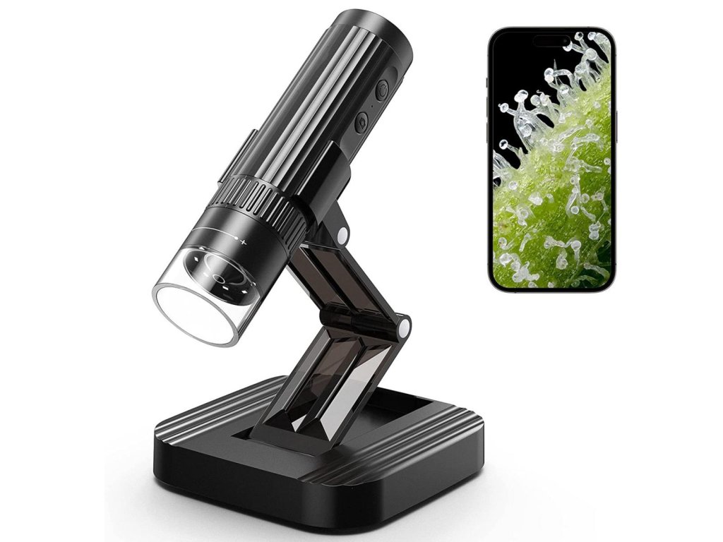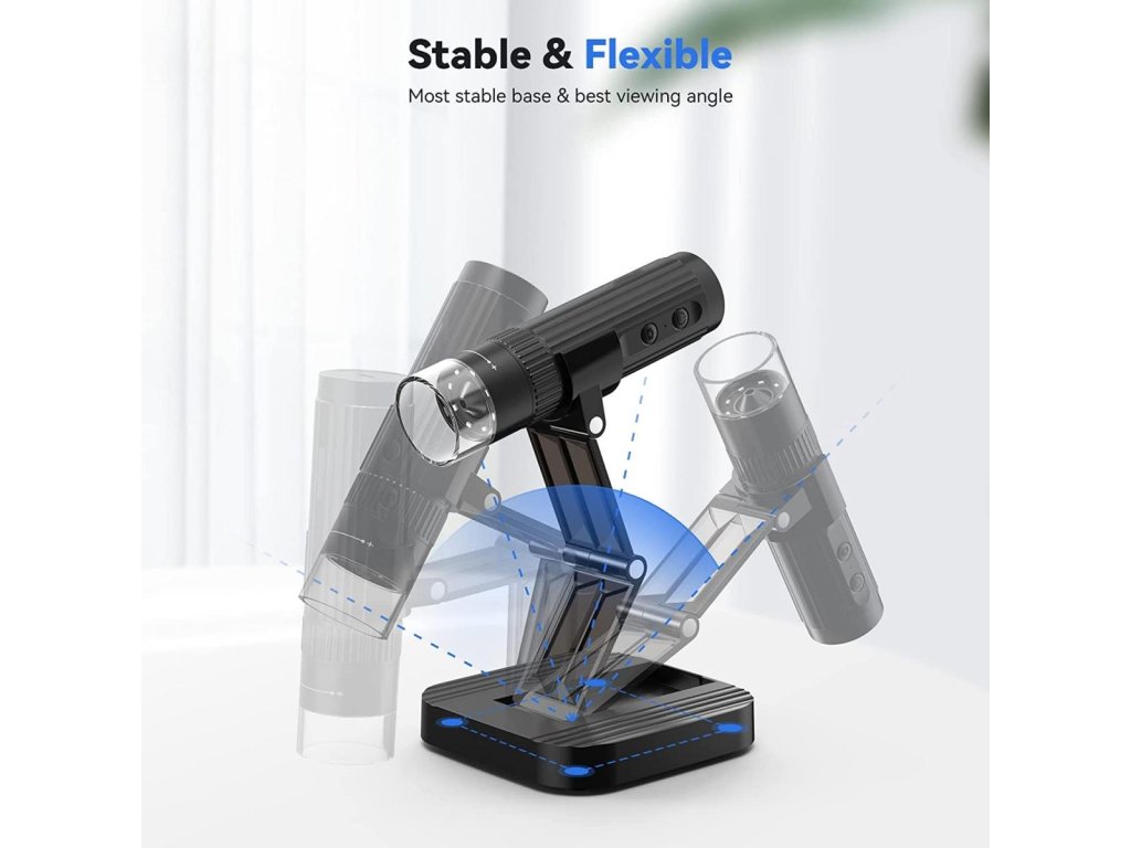 Microscop WiFi fără fir, Cameră de inspecție HD USB portabilă, mărire 50x-1000x, cu suport pliabil, compatibil cu iPhone, iPad, Android, Mac, Windows