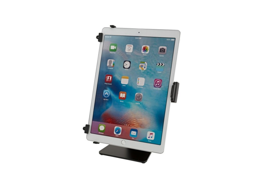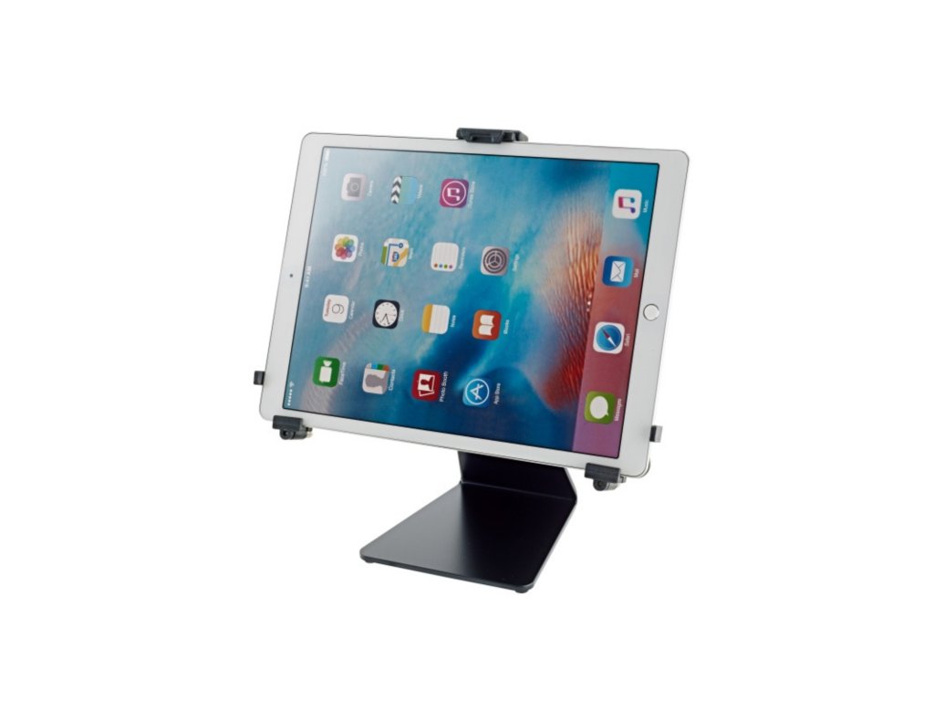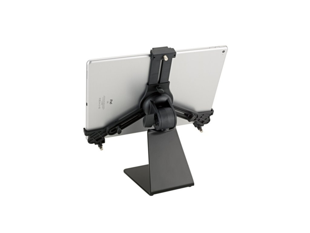 Brațele de sprijin reglabile individual permit utilizarea tabletelor cu o înălțime de la 222 până la 334 mm și o lățime de la 128 până la 232 mm (de exemplu iPad, iPad Air, iPad Pro, Amazon Fire HDX 8.9, Samsung Galaxy Tab de la 9.7, Google Nexus 9). , Asus Transformer sau Microsoft Surface precum și Surface Pro). Adâncimea tabletelor poate varia între 6 și 11 mm. Când utilizați suportul pentru tabletă pentru prima dată, reglați brațele de sprijin ajustând șuruburile de strângere în funcție de dimensiunea și adâncimea tabletei. Pentru alte utilizări, tableta poate fi atașată și detașată rapid și ușor cu ajutorul dispozitivului de blocare. Suportul va ține tableta în siguranță și în siguranță. Piulița practică vă permite să reglați unghiul, astfel încât fiecare utilizator să-și poată găsi cu ușurință poziția individuală ideală. Tableta poate comuta între orientarea portret și peisaj. Tableta rămâne pe loc, nu există pericolul ca tableta să se comute singură.