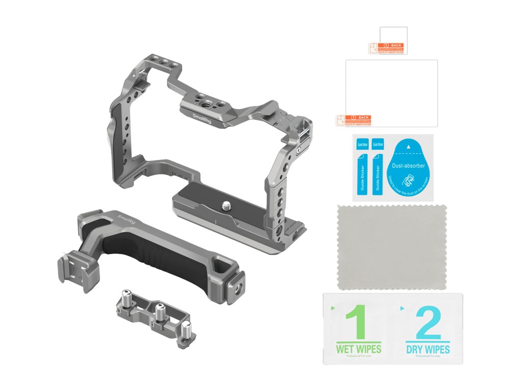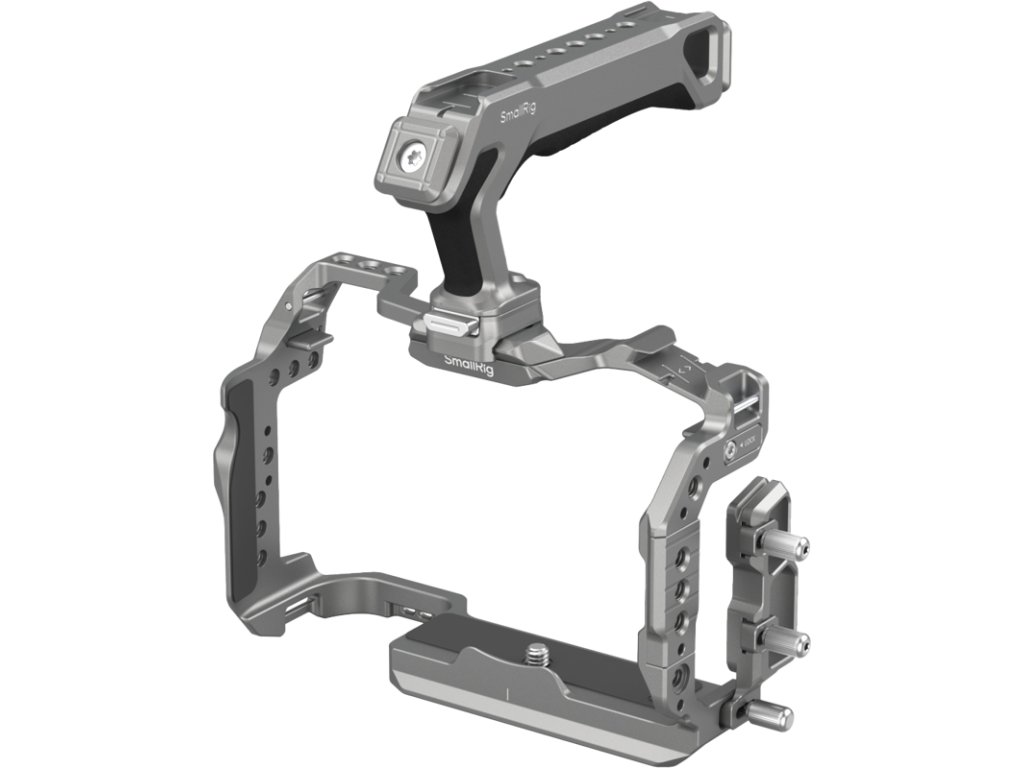 Kitul dispune de interfețe HawkLock încorporate cu eliberare rapidă pentru o montare rapidă și sigură. Este echipat cu o șină de eliberare rapidă H21 NATO, un suport de eliberare rapidă pentru patina de fixare H18, o placă de eliberare rapidă H38 Arca-Swiss, găuri filetate de 1/4"-20, găuri de poziționare de 1/4"-20, găuri filetate de 3/8"-16, găuri de poziționare ARRI de 3/8"-16, suporturi pentru patina de fixare, șine NATO, interfețe QD, găuri pentru curea și multe altele pentru a atașa monitoare, microfoane, trepiede, sisteme post-focus, mânere și alte accesorii pentru a îmbunătăți crearea de conținut video într-o varietate de scene.Carcasa fixează camera cu un singur șurub de 1/4"-20 în bază și două blocuri de poziționare pe laterale și include tampoane de silicon încorporate pentru a preveni zgârierea camerei.