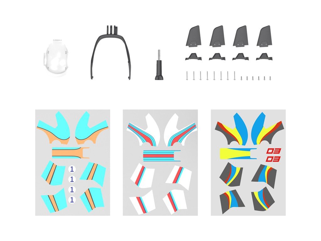 Kit creativ pentru DJI FPV Combo. Un set de autocolante și suporturi pentru a-ți aduce FPV-ul la viață.